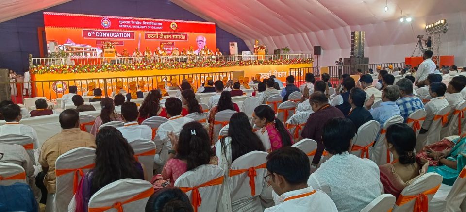 ડભોઇ તાલુકા ના કુંઢેલા સ્થિત ગુજરાત કેન્દ્રીય વિશ્વ વિદ્યાલયના છઠ્ઠા દીક્ષાંત સમારોહમાં વિવિધ ફેકલ્ટીના કુલ ૬૬૨ વિદ્યાર્થીઓને પદવી આપવામાં આવી. યુનિવર્સિટીના કુલાધિપતિ ડૉ. હસમુખ અઢિયાએ મુખ્ય અતિથિ તરીકે વિદ્યાર્થીઓને પદવી આપી હતી. પોતાના દીક્ષાંત સંબોધનમાં ડૉ. અઢિયાએ કહ્યું કે આપણે હંમેશા સકારાત્મક અને વિનમ્ર રહેવું જોઈએ. તેમણે વિદ્યાર્થીઓને ટેકનિકલ જ્ઞાન સાથે ભારતીય આધ્યાત્મિક જ્ઞાન મેળવવાનો સતત પ્રયાસ કરતા રહેવા માર્ગદર્શન આપ્યું હતું.સાથે જ તેમણે તમામ વિદ્યાર્થીઓને સફળ જીવન માટે શુભેચ્છા પાઠવી હતી. આ સાથે જ સમારોહને સંબોધિત કરતાં યુનિવર્સિટીના કુલપતિ પ્રો. રમાશંકર દુબેએ જણાવ્યું હતું કે યુનિવર્સિટીના કુંઢેલા સ્થિત કેમ્પસમાં પ્રથમ વખત દીક્ષાંત સમારોહનું આયોજન થવું સમગ્ર યુનિવર્સિટી પરિવાર માટે ગૌરવની વાત છે. તેમણે તમામ પદવી પ્રાપ્ત કરનાર વિદ્યાર્થીઓને ઉજ્જવળ ભવિષ્ય માટે શુભેચ્છાઓ પાઠવી.ઉલ્લેખનીય છે કે દીક્ષાંત સમારોહમાં સ્નાતક, એમ.ફિલ. અને પીએચ.ડી. સહિત તમામ કોર્સના કુલ 662 જેટલા વિદ્યાર્થીઓ પદવી આપવામાં આવી હતી.અને છેલ્લા બે શૈક્ષણિક સત્રોને લઈને સ્નાતક વર્ગમાં ૧૧૦, સ્નાતકોત્તર વર્ગમાં ૪૨૮, એમ.ફિલ.માં ૪ અને પીએચ.ડી.માં ૧૨૦ વિદ્યાર્થીઓને પદવી આપવામાં આવી હતી. આ પ્રસંગે પરીક્ષા નિયંત્રક ડૉ. દર્શન મારૂ, કુલસચિવ પ્રો. એચ.બી. પટેલ, તથા વિવિધ ફેકલ્ટીના અધ્યક્ષો, શિક્ષકગણ અને બિનશૈક્ષણિક કર્મચારીઓ હાજર રહ્યા હતા.
