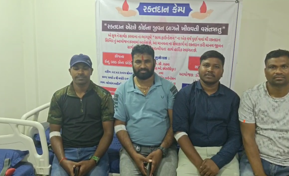 છોટાઉદેપુર જિલ્લામાં સીકલસેલ એનેમીયા એએનસી બહેનોને તેમજ આકસ્મિક ઘટનાઓ વખતે ઉભી થતી ઇમરજન્સી રક્ત જરુરીયાત વખતે સરળતાથી લોહી મળી રહે તે માટે આજે ઓરસંગ હોસ્પિટલ છોટાઉદેપુર ખાતે સાથ ફાઉન્ડેશન છોટાઉદેપુર દ્વારા રક્તદાન શિબિર નું આયોજન કરવામાં આવ્યું હતું જેમાં નિરંજનભાઈ રાઠવા, વાલસિંગભાઇ રાઠવા, ડો. જિતેન્દ્ર રાઠવા , એક્સ આર્મી ગોપાલભાઈ રાઠવા,રમલીયાભાઈ રાઠવા,રતુભાઇ સહિત ના સામાજિક કાર્યકરો ઉપસ્થિત રહ્યા હતા, ટુંકા સમયમાં આયોજિત કરવામાં આવેલ રક્તદાન શિબિર માં ૩૦ થી વધુ રક્તદાતાઓ રક્તદાન કર્યું હતું. રક્તદાન શિબિર નું સફળ આયોજન ડો. કનસિંગ રાઠવા, ડો.જયેશ રાઠવા , શૈલેષ ભાઈ રાઠવા મલાજા,રવીભાઈ ખજુરીયા,મેહુલ ડીમચીયા સિંગલકુવા, આશિષ નહાર ભીખાપુરાસહિત ના યુવાનો દ્વારા કરવામાં આવ્યું હતું.