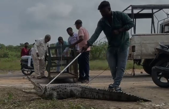 વડોદરામાં હાલ ગણેશઉત્સવ શરૂ છે ત્યારે, વડોદરાના નવલાખી કુત્રિમ તળાવ નજીક જીઈબીના થાંભલા પર બે માણસો કામગીરી માટે ઉપર ચડ્યા હતા તે દરમિયાન તેમને નીચે પાંચ ફૂટનો મગજ જોતા તેમને વાઇલ્ડ લાઇફ રેસ્ક્યુ ટ્રસ્ટ ને કોલ કરતા વાઇલ્ડ લાઇફ રેસ્ક્યુ ટ્રસ્ટના કાર્યકર્તાઓ વન વિભાગના અધિકારીઓને સાથે રાખી મગરનું કરવા સ્થળ ઉપર આવી પહોંચ્યા હતા જ્યાં ભારે જે મત બાદ તેઓએ મગરને રેસ્ક્યુ કરી વન વિભાગને સુપ્રત કર્યું હતું.