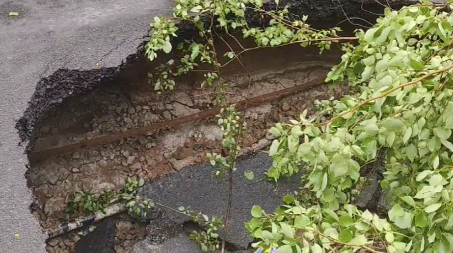 આખી ફોર વ્હીલ અંદર જતી રહે તેટલો મોટો પડ્યો છે ભુવો