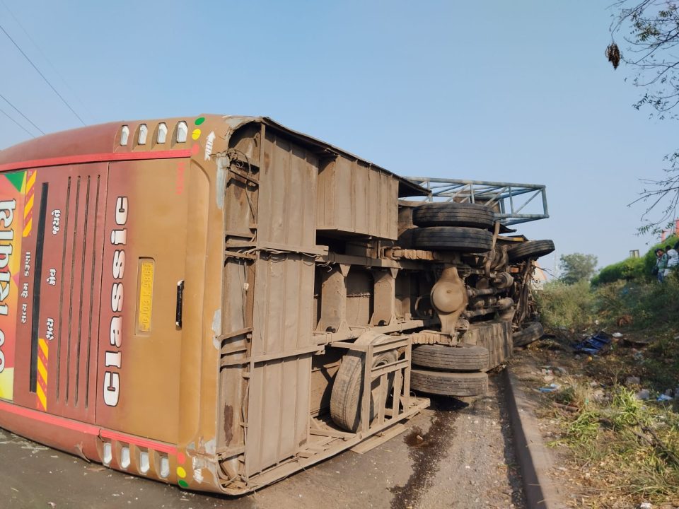 સુરત થી મુસાફરો ભરી ભાવનગર તરફ જઈ રહેલ લક્ઝરી બસ જાંબુઆ બ્રિજ ઉપરથી પસાર થઈ રહી હતી. આ દરમિયાન આશરે 9 થી 9:30 કલાકે સાંઈ સીતારામ હોટેલ પાસે એક ઇકો કાર લના ચાલકે ડમ્પર નો ઓવરટેક કરી લક્ઝરી બસની સામે નાખતા લક્ઝરી બસ ફૂટપાથ પર ચડી ગઈ હતી અને પલટી ખાઈ ગઈ હતી. જેના કારણે અંદર બેઠેલા મુસાફરોમાં પણ ફાફડાટનો માહોલ ફેલાયો હતો. મુસાફરોને નાની મોટી ઇજાઓ થઈ હતી. બનાવને પગલે ઘટના સ્થળે હાઇવે ટ્રાફિક પોલીસ અને સ્થાનિક પોલીસ આવી પહોંચી હતી અને ક્રેનની મદદ વડે બસને સીધી કરવા સાથે આગળની કાર્યવાહી હાથ ધરી હતી જ્યારે રસ્તો અને સારવાર માટે હોસ્પિટલ ખસેડાયા હોવાનું જાણવા મળ્યું હતું.ડંપરનો ઓવરટેક કરી રહેલી ઈકો ગાડીના ચાલકે સામે આવતી ખાનગી લક્ઝરી બસ પર ગાડી નાખતા બસ ફૂટપાટ પર ચડી જઈ પલટી ખાઈ ગઈ હતી. અકસ્માતમાં 9 જેટલા મુસાફરોને નાની મોટી ઈજાઓ પહોંચી હતી. બનાવને પગલે હાઈવે પોલીસ ઘટના સ્થળે આવી પહોંચી હતી અને આગળની કાર્યવાહી હાથ ધરી હતી.