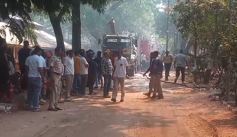 વડોદરાના મકરપુરામાં એસઆરપી ગ્રુપ – 9 ના સ્ટોરરૂમ આવેલા છે. આ સ્ટોરરૂમમાં એસઆરપીના જવાનોને જ્યારે બહાર ફરજ માટે મુકવામાં આવે તે સમયે ઉપયોગી ટેન્ટ સહિતનો સામાન મુકવામાં આવ્યો હતો. આ સ્ટોર રૂમની બનાવટમાં લાકડા-પતરાંનો મહત્તમ ઉપયોગ કરવામાં આવ્યો છે. આજે સવારે આ સ્ટોરરૂમમાં ભીષણ આગની ઘટના સામે આવી છે. ઘટના અંગે જાણ થતા જ વિવિધ ફાયર સ્ટેશનોમાંથી સ્ટાફ તાત્કાલિક ઘટના સ્થળે દોડી આવ્યા છે. અને આગ પર કાબુ મેળવવાના પ્રયત્નો તેજ કરી દીધા છે અત્યાર સુધી વિવિધ ચાર ફાયર સ્ટેશનોમાંથી 8 જેટલા ફાયર ફાઇટર ઘટના સ્થળે પહોંચીને આગ પર કાબુ મેળવવાની કામગીરીમાં જોડાયા છે. આ ઘટનામાં 6 જેટલા સ્ટોરરૂમમાં મુકવામાં આવેલો સામાનને મોટું નુકશાન પહોંચ્યું હોવાનું પ્રાથમિક સુત્રોએ જણાવ્યું છે. ઘટનાની જાણ થતા એસઆરપી તથા પોલીસના ઉચ્ચ અધિકારીઓ દોડી આવ્યા હતા. આગની ઘટનામાં જેટલો સામાન બચાવી શકાય તેમ હતો તેને એસઆરપી જવાનો દ્વારા બચાવી લેવામાં આવ્યો છે. ફાયર વિભાગની મદદ માટે એસઆરપીના જવાનો પણ જોડાયા હતા સ્ટેશન ફાયર ઓફિસર નિકુંજ આઝાદે જણાવ્યું કે, આગની ઘટના અંગે કોલ મળતા જ ટીમો દોબીને આવી હતી. જીઆઇડીસી, ગાજરાવાડી ફાયર સ્ટેશનથી ટીમો પ્રથમ આવી પહોંચી હતી સ્ટોરરૂમમાં ગેસ સિલિન્ડર પણ હોવાની પ્રાથમિક માહિતી મળી હતી. બંધ સ્થળના કારણે જલ્દી નિર્ણય લેવો પડે તેમ હતો. અંદર મટીરીયલ શું હતું તેની માહિતી ના હોવાના કારણે વધુ રીસોર્સ ઉપલબ્ધ રાખ્યા હતા. આગના વિકરાળ સ્વરૂપ પર કાબુ મેળવી લેવામાં આવ્યો છે. અને હાલમાં કુલીંગની કામગીરી ચાલી રહી છે. 45 મીનીટમાં મામલો શાંત પડતો હોવાનું જોવા મળી રહ્યું છે