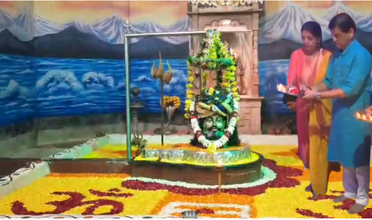 શહેરના પૂર્વ વિસ્તારના સુખધામ હવેલી પાસે આવેલ નાગેશ્વર મહાદેવ મંદિરમાં પવિત્ર શ્રાવણ માસ નિમિત્તે નીત નવીન શિવજી પ્રભુ અલૌકિક દિવ્ય દર્શનનું આયોજન ચાલી રહ્યું છે. જે અંતર્ગત શ્રાવણ માસના દ્વિતીય સોમવારે પ્રભુને પાણીમાં ફૂલોની રંગોળી બનાવીને અલૌકિક મનોરથ દર્શન યોજાયા દભૉવતી ના જાંબાઝ ધારાસભ્ય શૈલેષભાઈ સોટા ,મીનાબેન મહેતા દંપતિ અન્ય મહાનુભાવો ઉપસ્થિત રહીને પ્રભુની આરતી ઉતારીને ભાવવિભોર બન્યા હતા. શ્રદ્ધાળુઓ પણ ખૂબ વિશાળ જન સંખ્યામાં પવિત્ર શ્રાવણ માસ માં ભક્તિ લીન થઈને શિવ ભક્તો દર્શનાર્થે આવી ભક્તિ માં ઓતપ્રોત થઈ રહ્યા છે. પૂજારી ઋષભ ભટ્ટ અને નાગેશ્વર મહાદેવ મંદિરને સમિતિના તમામ કાર્યકરો શ્રાવણ માસ નિમિત્તે સુંદર આયોજન અને વ્યવસ્થા કરી રહ્યા હોવાનું જાણવા મળી રહ્યું છે.