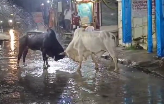 ગુજરાતના પ્રસિદ્ધ તીર્થક્ષેત્ર ચાંદોદ ના વિવિધ વિસ્તારો અને મુખ્ય બજારોમાં ગધેડા, આખલા, ગાય જેવા રખડતા પશુઓનું મોટા પાયે સામ્રાજ્ય ફેલાયું છે જેમાં 15 થીએ વધુ તો આખલાઓનીજ સંખ્યા છે જે આખલાઓ નગરના ભરચક વિસ્તારમાં વારંવાર દ્વંદ યુદ્ધે ચડી અરાજકતા ફેલાવી દુકાનદારો વાહન ચાલકોને નુકસાન પહોંચાડી આબાલ વૃદ્ધ સૌના જીવ જોખમમાં મૂકતા રહ્યા છે શુક્રવારે રાત્રિના પણ ચાંદોદના ત્રવાડી ટેકરા ગણેશ પંડાલ પાસેના મુખ્ય માર્ગ પર બે આખલાઓ શીંગડે શિંગડા ભેરવી રીતસરના બાથે ચડ્યા હતા અને આખાય વિસ્તારમાં આતંક મચાવ્યો હતો આખલાના આ યુદ્ધે આસપાસ ના દુકાનદારો અને રાહદારીઓના શ્વાસ અધ્ધર કરી દીધા હતા ઉપરાંત ઝઘડતા ઝઘડતા હોટલના ઓટલે ઘસી જઈ ટેબલ ખુરશી તેમજ પાણી લાઈનની તોડફોડ કરી મૂકી હતી તો સ્કૂટર સવાર બે લોકો આ ધમાલ નો ભોગ બનતા આબાદ બચી ગયા હતા વિસ્તારના રહેવાસીઓએ લાકડાના ફટકા તેમજ પાઇપ-ડોલ દ્વારા સતત પાણીનો મારો કરી આખલાઓને છૂટા પાડવાનો પ્રયત્ન કરતા અડધા કલાક બાદ કાળીયા ધોળીયા નું દ્વંદ યુદ્ધ પૂર્ણ થયું હતું