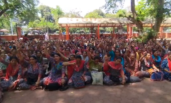વડોદરાના કારેલીબાગ વિસ્તારમાં આંગણવાડી કાર્યકરો અને હેલ્પરોએ તેમના માનદ વેતનમાં વધારો કરવાની માંગ સાથે ઉગ્ર વિરોધ પ્રદર્શન કર્યું છે. આંદોલનનું નેતૃત્વ કરી રહેલા કાર્યકર કિન્નરી યાદવે જણાવ્યું હતું કે, વર્ષ ૨૦૨૨ થી કાર્યકરોનું વેતન ₹૧૦,૦૦૦ અને હેલ્પરોનું વેતન માત્ર ₹૫,૦૦૦ પર સ્થિર છે. આજની આસમાને પહોંચેલી મોંઘવારીમાં આટલા ઓછા પગારમાં ઘર ચલાવવું અત્યંત મુશ્કેલ બની ગયું છે.