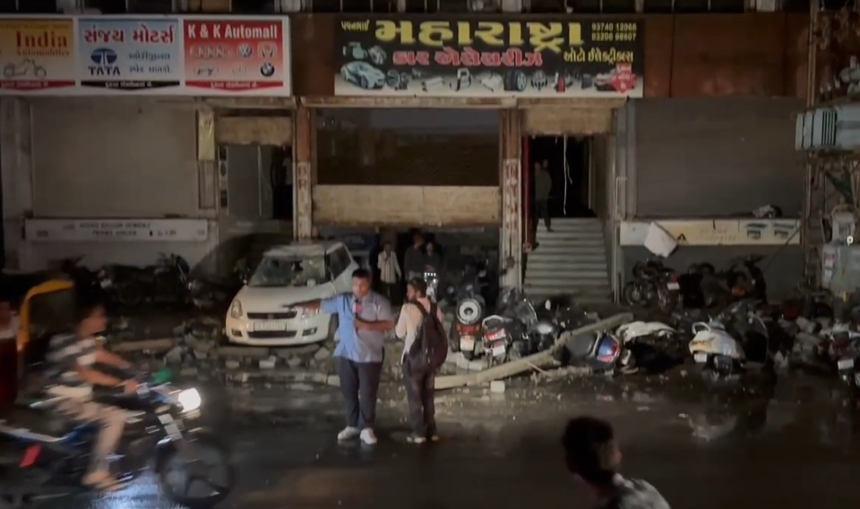 વડોદરામાં આવેલા વાવાઝોડાને પગલે નાગરવાડા ચાર રસ્તા પાસે આવેલ બ્રિજ કોર્નર એપાર્ટમેન્ટની અગાશી તૂટી પડતા વાહનો દબાઈ ગયા હતા.જેથી લોકોમાં ફફડાટ ફેલાયો હતો.