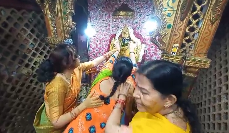 મોટી સંખ્યામાં મહાલક્ષ્મી માતાને પીઠી લગાવવા માટે બહેનો ઉપસ્થિત રહ્યા હતા.