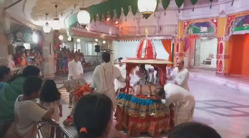 જ્યારે પ્રભુનું સ્વરૂપ કિશોર ભાવના નું હોય ત્યારે જ તેમના રથને ઘોડા બાંધવામાં આવે છે પ્રભુ અને સ્વામીનીજી ને સખીઓ થી ઘેરાયેલા રથમાં બેસાડવામાં આવે છે અને તેઓના બે સખા ઘોડાનું સ્વરૂપ ધારણ કરી રથ ખેંચે છે.