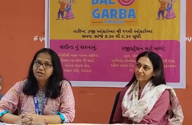 બીસીસી બાલ ગરબા મહોત્સવ 2024 નું આયોજન અક્ષર ચોક પાસે રીલાયનસ મોલ ની સામે આવેલ માં આયોજન કયું છે 2007 થી ગરબા નુ આયોજન કરવામાં આવ્યું છે જેમાં તમામ આયોજન કરવામાં આવ્યું છે જેમાં અલગ અલગ ઈનામો પણ રાખવામાં આવીયા છે જ્યારે ગરબા રાત્રે 7.30થી 9.30 વાગે સુધી ગરબા રમી શકાશે જ્યારે દર વષૅ ની જેમ તમામ સુવીધા રાખવામાં આવી છે જે પણ ફનડ આવશે એ જરુરીયાત મંદો ને આપવામાં આવશે બરોડા સીટીજનસ કાઉન્સીલ બાળકો ને જરુરીયાત મંદ ને ફી આપવામાં આવી છે આ વષૅ પુર માં 630 કીટ આપવામાં આવી છે હેલ્પ લાઈન નંબર છે જે ને કઈ મુશ્કેલ હોય તો સંપકૅ કરી શકે છે આજે પત્રકાર પરિષદ નું આયોજન કયુ છે
