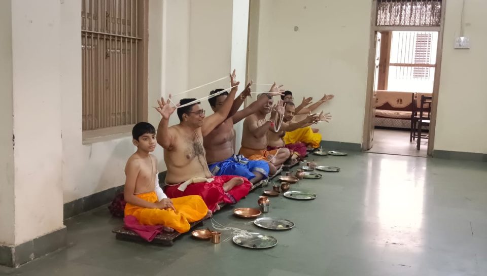 વડોદરા શહેર દાંડિયા બજાર વિસ્તારમાં આવેલ બ્રાહ્મણ સભા હોલ ખાતે બ્રાહ્મણો દ્વારા જનોઈ બદલવાનો કાર્યક્રમ કરવામાં આવ્યો