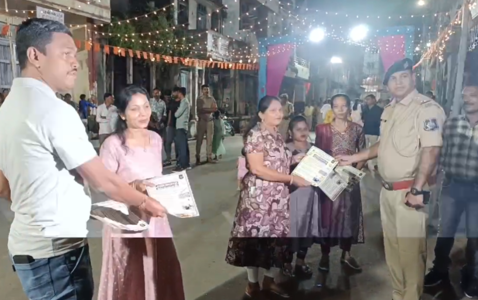 હાલ ચાલી રહેલ નવરાત્રી પર્વમાં છોટાઉદેપુર નગર સહિત જિલ્લામાં ઠેર ઠેર રાત્રી ગરબાનું ભવ્ય આયોજન કરવામાં આવ્યું છે. તમામ ગરબા ગ્રાઉન્ડમાં યુવાધન મોડી રાત સુધી ગરબા ઘૂમે છે. મહિલાઓ અને યુવતીઓ મોડી રાત્રે ઘરે જતી હોય છે. તેવા સમયે યુવતીઓ એ કંઈ રીતની સતર્કતા રાખવી જોઈએ, જો કોઈ વાહન ન મળે તો ૧૮૧ નંબર ડાયલ કરી પોલીસને જાણ કરવી. મહિલાઓમાં જાગૃતિ આવે તેઓ સતર્ક રહી તહેવાર ઉજવે તે માટે છોટાઉદેપુર નગરના લાયબ્રેરી રોડ નવરાત્રી મહોત્સવ માં સુરક્ષા સેતુ સોસાયટી, છોટાઉદેપુર જિલ્લા પોલીસ દ્વારા પત્રિકાઓ વહેંચી બેનર લગાવવામાં આવ્યા હતા. લાયબ્રેરી રોડ સહિત તમામ ગરબા ચોકમાં છોટાઉદેપુર પીઆઈ પરમાર,એસઓજી પી.એસ.આઇ વી.એન.તડવી અને પોલીસ સ્ટાફ દ્વારા પત્રિકા વહેંચી સમજૂતી આપવામાં આવી હતી.
