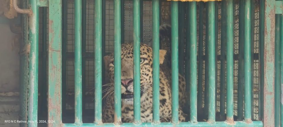 ગણતરીની મિનિટો માં જ દીપડીનું રેસ્ક્યુ કરાયુ,
