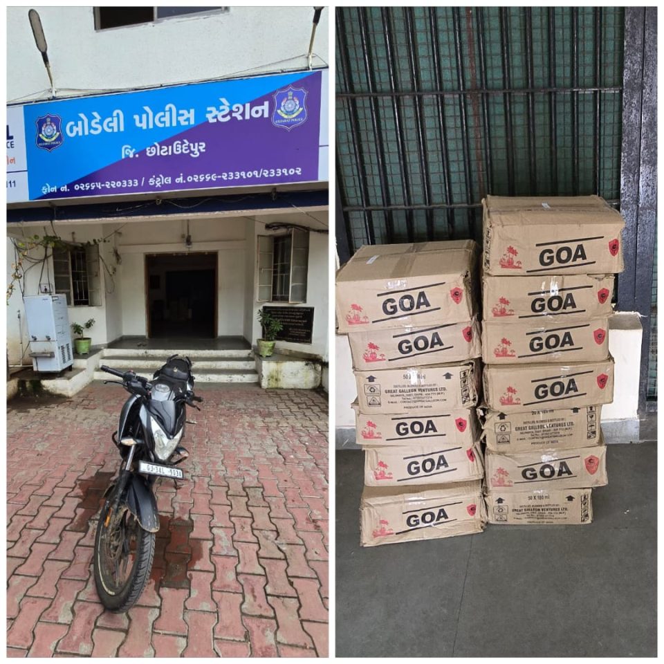 આઇ.જી.શેખ પોલીસ અધિક્ષક છોટાઉદેપુરનાઓએ સુચના અને માર્ગદર્શન આપેલ કે દારૂબંધીના કાયદાનો કડક અમલ થાય તે મુજબ કાર્યવાહી કરવા જીલ્લાના તમામ થાણા અધિકારી તથા તમામ શાખા ઇન્ચાર્જ નાઓને પ્રોહીની ગેરકાયદેસર પ્રવૃતિ/હેરાફેરી * સદંતર રીતે નેસ્તનાબુદ થાય તે રીતેની સુચના કરેલ…. જે અન્વયે વી.એસ.ગાવિત પોલીસ ઇન્સ્પેકટર લોકલ ક્રાઇમ બ્રાન્ચ છોટાઉદેપુરનાઓ એએલ.સી.બી સ્ટાફના પોલીસ માણસોને ખાનગી રાહે બાતમી હકીકત મેળવવા સમજ કરેલ જે અનુસંધાને એલ.સી.બી સ્ટાફના પોલીસ માણસો બોડેલી પોલીસ સ્ટેશન વિસ્તારમાં પેટ્રોલીંગમાં હતા તે દરમ્યાન બાતમી હકિકત આધારે થારકુવા ગામે જંગલમાં ઝાડી ઝાખારાઓમાં એક બજાજ કંપનીની પલ્સર મોટર સાયકલ જેનો રજીસ્ટ્રેશન નંબર GJ-34-L-9034 સાથે ભારતીય બનાવટનો વિદેશી દારૂ સંતાડી રાખેલ છે તેવી હકિકત આધારે રેઇડ કરી ભારતીય બનાવટનો વિદેશી દારૂ કુ.કિ.રૂ.૭૪,૨૪૦/- નો મુદામાલ તથા ઉપયોગમાં લિધેલ બજાજ કંપનીની પલ્સર મોટર સાયક્લને ઝડપી પાડી પ્રોહીનો ગણનાપાત્ર કેશ શોધી કાઢી બોડેલી પોલીસ સ્ટેશનમાં ગુનો રજીસ્ટર કરાવી કાયદેસરની કાયર્વાહી હાથ ધરવામાં આવેલ છે.