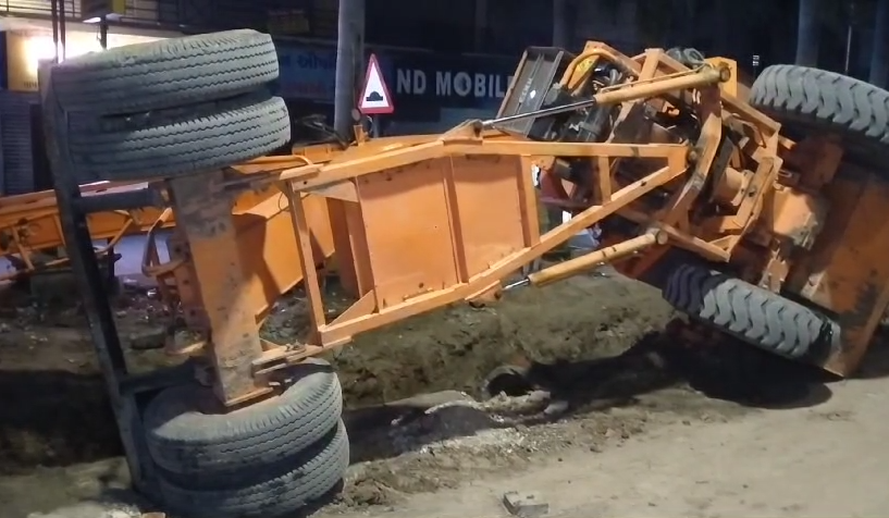 વડોદરા શહેરના વાસણા રોડ પર પાલિકા દ્વારા કરોડો રૂપિયાના ખર્ચે ડિ-માર્ટ જંક્શન પર ઓવર બ્રિજ બનાવવાનો નિર્ણય લેવામાં આવ્યો છે. ઓવર બ્રિજની કામગીરી પુરજોશમાં શરૂ થાય તે પહેલા પાલિકા દ્વારા ડ્રેનેજ લાઇન નાંખવાની કામગીરી કરવામાં આવી રહી છે. જે અંતર્ગત મનીષા ચોકડીથી ડિ માર્ટ તરફ જતો તક્ષ કોમ્પલેક્ષ પાસેનો એક તરફનો રસ્તો બંધ કરી દેવામાં આવ્યો છે. ડ્રેનેજ લાઇનના મોટા મોટા પાઇપો જમીનમાં ઉતારવા માટે ક્રેનની મદદ લેવાઇ રહી છે. આ વચ્ચે સવારના સમયે તક્ષ કોમ્પલેક્ષ પાસે આવેલી દુકાનો ચાલુ રહેતી હોય છે. અને તેમાં ગ્રાહકો ખરીદી કરવા માટે આવતા હોય છે. દરમિયાન ગતરાત્રે તક્ષ કોમ્પલેક્ષ પાસે ડ્રેનેજની કામગીરી સમયે ઓવર લોડ થતા ક્રેન પલટી ગઇ હતી. મસમોટી ક્રેઇન પલટી તે સમયે આસપાસની દુકાનો બંધ હોવાથી મોટી દુર્ઘટના ટળી હોવાનું અનુમાન લગાડવામાં આવી રહ્યું છે. આ ઘટના સમયે ક્રેઇનમાં ઓપરેટર હાજર હતો. પલટી જતા તેનો આબાદ બચાવ થયો છે. આ સાથે જ પલટી મારી ગયેલી ક્રેનને ઉભી કરવા માટે બીજી બાજુ તરફનો રસ્તો બંધ કરીને અન્ય બે ક્રેઇનની મદદ લેવામાં આવી હતી. આખરે મોડી રાત્રે પલટી ગયેલી ક્રેનને સીધી કરવામાં સફળતા મળી હતી. સ્થાનિકોની માંગ છે કે, આ કામગીરી લાંબો સમય ચાલે તેમ છે, ત્યારે આ પ્રકારની ઘટનાનું પુનરાવર્તન ના થાય તેવા વિશેષ પ્રયાસો પાલિકા દ્વારા કરવા જોઇએ.