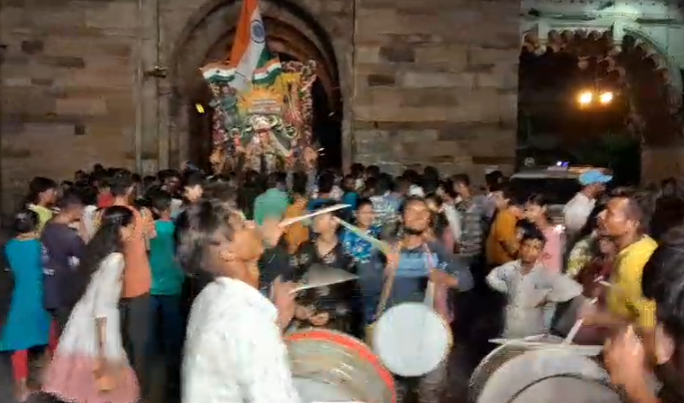 ડી.જે.ના પ્રતિબંધ ના કારણે બરોડાની દશામાં મંડળ દ્વારા ઢોલ નગારા સાથે દશામા ની આગમન યાત્રા નીકળી