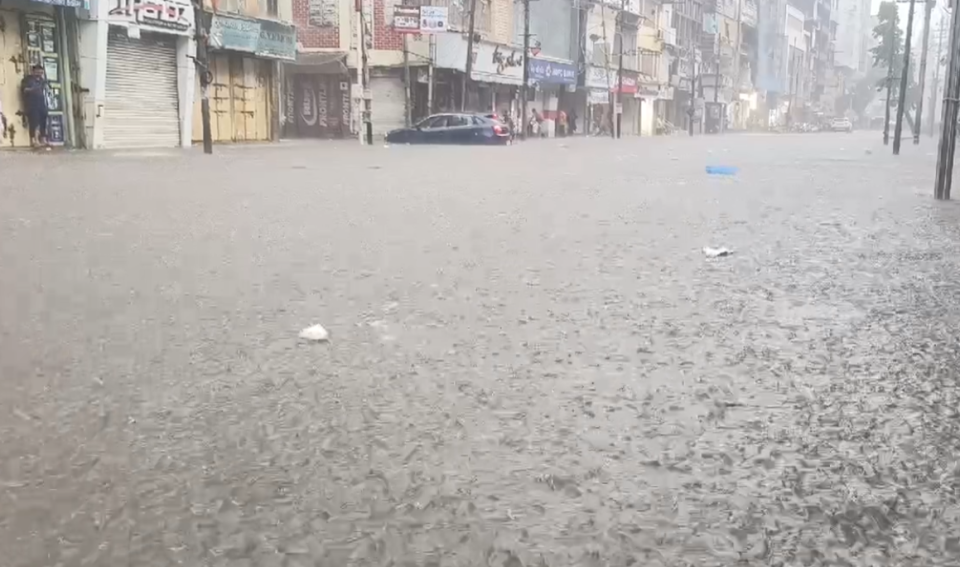 ભારે વરસાદના કારણે પોતાના માલ સામાન સુરક્ષિત સ્થળે મૂકતા દુકાનદાર અને વ્યાપારીઓ…