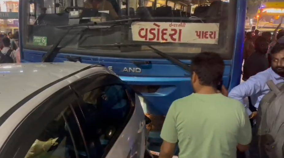 ફોરવીલર ડ્રાઇવર નું આક્ષેપ બસ ડ્રાઇવર પીધેલી હાલતમાં છે..