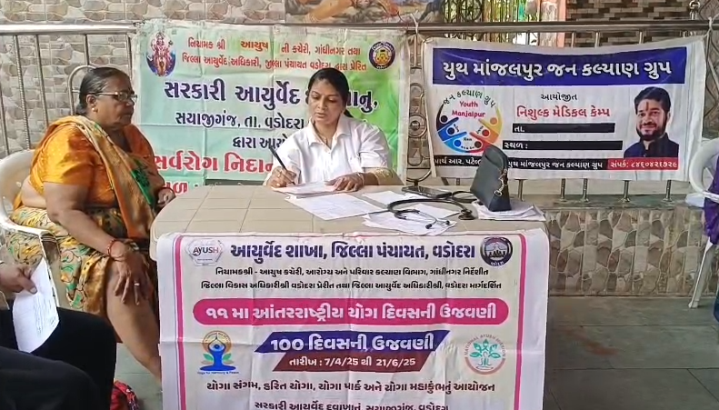 આયુષ મંત્રાલય ભારત સરકાર ના આયુર્વેદ વિભાગ દ્વારા વોર્ડ નં.17 માં યુથ કોંગ્રેસ ના પ્રમુખ પાર્થ પટેલના સહયોગથી શહેરના મકરપુરા વિસ્તારમાં આવેલા ૐકારેશ્વર મહાદેવ મંદિર પરિસર ખાતે નિઃશુલ્ક આયુર્વેદિક કેમ્પનું આયોજન કરવામાં આવ્યું હતું આ કેમ્પમાં પેટ સંબંધિત સમસ્યાઓ જેવા કે ગેસ, અપચો, એસિડિટી, કબજિયાત તથા સાંધાના રોગો,કમરની તકલીફ, ચામડીના રોગો, શરદી ઉધરસ,,દમ, ડાયાબિટીસ, મેલેરિયા, અશક્તિ,સ્ત્રી રોગ,બાળ રોગ,હરસ મસા, પથરી,લોહિની ઉણપ, રોગપ્રતિકારક શક્તિ વધારવા માટે ઉકાળો, નાના બાળકો માટે સુવર્ણપ્રાશન તથા જૂના હઠીલા રોગોની તપાસ સાથે આયુર્વેદ પધ્ધતિ થી ઉપચાર અને નિઃશુલ્ક દવાઓ આપવામાં આવી હતી.આ કેમ્પસમાં માંજલપુર, મકરપુરા સહિતના વિસ્તારના લોકોએ મોટી સંખ્યામાં લાભ લીધો હતો.