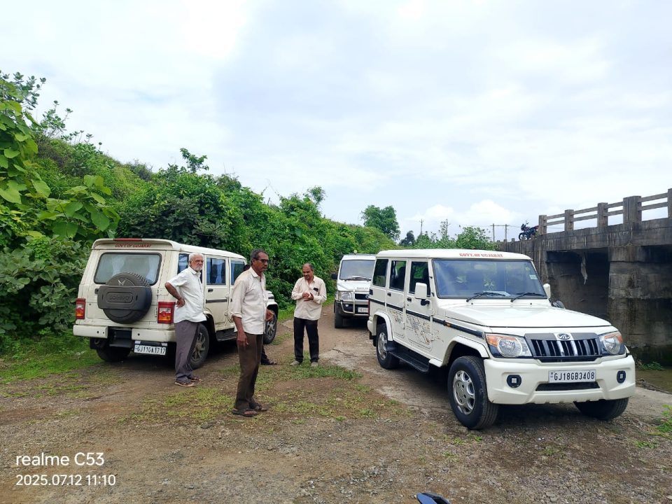 વિસાવદર તાલુકાના લીમધ્રા ગામે રોડ ઉપરના પુલનું તંત્ર દ્વારા થયેલ તપાસ