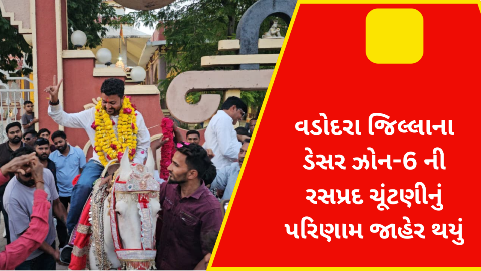 વડોદરા જિલ્લાના ડેસર ઝોન-6 ની રસપ્રદ ચૂંટણીનું પરિણામ જાહેર થયું છે, જેમાં ભારે ટક્કર બાદ વિજેતા જાહેર થતાં પંથકમાં જશનનો માહોલ જોવા મળ્યો.