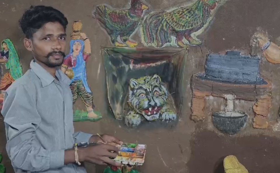 આવતી કાલે સમગ્ર વિશ્વ વિશ્વ આદિવાસી દિવસની ઉજવણી કરવાનો છે.ત્યારે પોતાની કળાના માધ્યમથી આદિવાસી સમાજની સંસ્કૃતિ ને ઉજાગર કરવાના ઉદ્દેશ્ય સાથે તેણે એવી અનેક કૃતિઓ બનાવી છે જેને જોઈને તમે પણ મંત્ર મુગ્ધ થઈ જશો મધ્યપ્રદેશની સરહદે આવેલ ગુનાટા ગામે રહેતો મલ્ટી ટેલેન્ટેડ મેહુલ રાઠવા પોતાના પરિવારની આર્થિક સ્થિતિ ખુબજ નબળી હોવાને લઈ તેણે પોતાનો અભ્યાસ ધોરણ 10 પછી છોડી દેવા મજબૂર બનવું પડ્યું.મેહુલ રાઠવાના પરિવારમાં મેહુલ સહિત તમામ પરિજનો સિકલસેલ એનિમિયા નામની બીમારી થી પીડિત છે.મેહુલને નાનપણથીજ ચિત્રો દોરવામાં રસ હતો કારણ કે મેહુલના મામા માનસિંગભાઈ રાઠવા પીઠોરા ચિત્રના એક નામી લખારા છે અને એટલે જ તેના લોહીમાંજ એક કલાકારનું સિંચન થયું.મેહુલે ધોરણ 10 બાદ ભલે પોતાનો અભ્યાસ છોડી દીધો પણ તેનામાં છુપાયેલ કલાકારે તેને તેની કલાથી વિલિપ્ત થવા ન દીધો.વિષમ પરિસ્થિઓમાં પણ મેહુલ ઘરે પોતાના પરિવારની સેવા કરવાની સાથે સમય મળે ત્યારે કેનવાસ ઉપર પીઠોરા લખવાનું કામ કરે છે અને સાથે સાથે માટી માંથી પથ્થરને કોતરીને તો લાકડાને કોતરીને આદિવાસી સંસ્કૃતિ તેની રહેણી કરણી ને ઉજાગર કરતી મૂર્તિઓ બનાવે છે પોતાના જર્જરિત કાચા માટીના મકાનમાં તેણે આગળની ઓસરીની એક દીવાલ ઉપર માટી માંથી થ્રિ ડાયમેનશન માં અલગ અલગ આકૃતિઓ બનાવી છે વર્ષ 2020 મા તેણે પોતાના ગામની કોતરના કિનારે માટીમાંથી આદિવાસીઓના ભગવાન બિરસામુંડાની આબેહૂબ વિશાળ આકૃતિ બનાવી હતી.જેને નિહાળવા તત્કાલીન જિલ્લા વિકાસ અધિકારી IAS મિહિર પટેલ પહોંચ્યા હતા અને મેહુલની કળાને બિરદાવી ઇનામ આપી પ્રોત્સાહિત કર્યો હતો આદિવાસી સંસ્કૃતિ અને ભાષાને ઉજાગર કરતા છોટાઉદેપુરના તેજગઢ ખાતે આવેલ ભાષા કેન્દ્ર દ્વારા આદિવાસી રાઠવી ભાષા ઉપર લખાયેલ પુસ્તકોમાં આદિવાસી સંસ્કૃતિની ઝાંખી કરાવતા જે ચિત્રો દર્શાવાયા છે એ તમામ ચિત્રો મેહુલ રાઠવાએ દોરેલા છે, ત્યારે વિશ્વ આદિવાસી દિવસની ઉજવણી પ્રસંગે આદિવાસી સંસ્કૃતિ માટે પોતાના જીવનને સમર્પિત કરનાર મેહુલ રાઠવાની કલા ખરેખર પ્રસંશા પાત્ર તો છે. જ પણ પોતાની કલા ને ઉજાગર કરવા મેહુલ રાઠવાને યોગ્ય પ્લેટફોર્મ મળે તો મેહુલ રાઠવામાં છુપાયેલ કલા ન માત્ર રાજ્યકક્ષાએ પણ દેશવિદેશમાં સોળે કળાએ ખીલી ઉઠે એમ છે.