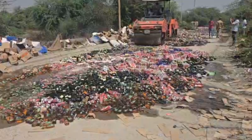વડોદરા જિલ્લામાં ઝડપી પાડેલા દારૂનો નાશ : એક કરોડથી વધુ કિંમતના દારૂ પર બુલડોઝર ફેરવાયું