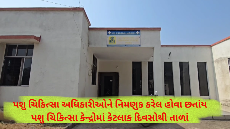 નસવાડી તાલુકાના તણખલા ગઢબોરિયાદ અને દુગ્ધાના પશુ ચિકિત્સા કેન્દ્રોમાં કેટલાક દિવસોથી તાળાં લટકી રહ્યા છે.પશુ ચિકિત્સા અધિકારીઓને નિમણુક કરેલ હોવા છતાંય પશુ ચિકિત્સા કેન્દ્રો ખોલતા નથી લાખો રૂપિયા પગાર મેળવતા કર્મચારીઓ ઉપર તંત્રનો અંકુશ નથી.