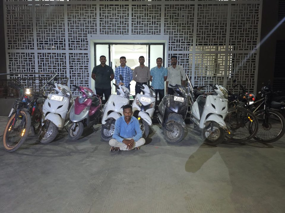 વડોદરાના મકરપુરા વિસ્તારમાં અલગ અલગ જગ્યાએથી તથા સોમા તળાવ પાસેથી ચોરી કરેલ કુલ-૬ ટુ વ્હીલર તથા કુલ-૪ સાઇકલ સાથે એક રીઢા ચોર ને પકડી પાડી ચોરીના છ અનડીટેકટ ગુના ડીટેકટ કરતી મકરપુરા પોલીસ