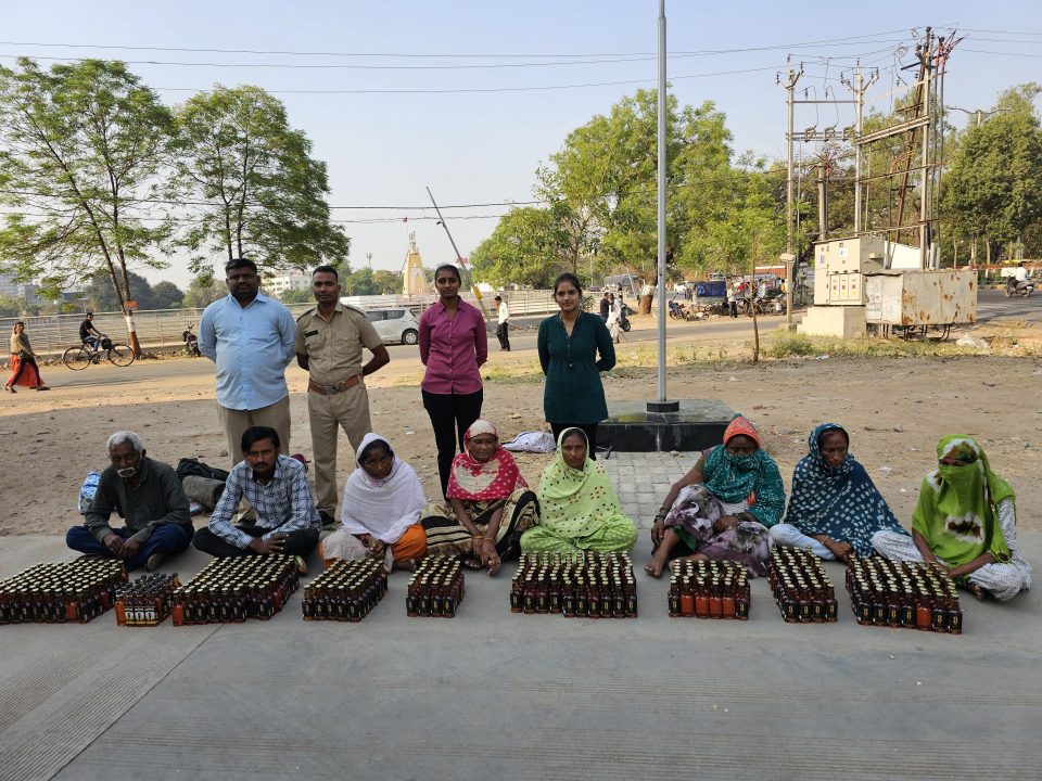 શહેરના મકરપુરા પોલીસના સ્ટાફને બાતમી મળી હતી કે, જાંબુઆ બ્રિજ પાસે આવેલી સાઈ સીતારામ હોટલની પાસે છ મહિલા અને બે પુરુષ અલગ અલગ થયેલામાં વિદેશી શરાબનો જથ્થો લઈને ઊભા છે અને બસની રાહ જોઈ રહ્યા છે. જે બાતમીના આધારે પોલીસે સ્થળ પર જઈને તપાસતા તેઓના થેલામાંથી વિવિધ બ્રાન્ડની વિદેશી શરાબની 534 જેટલી નાની બોટલો મળી આવી હતી. પોલીસે તેઓની પૂછપરછ કરતા તેઓ મૂળ ભાવનગરના રહેવાસી હોવાનું જણાવ્યું હતું અને મુંબઈથી શરાબનો જથ્થો લાવી વડોદરા ખાતે ઊતરી પડ્યા હતા. વડોદરાથી તેઓ ભાવનગર તરફની બસની રાહ જોતા હતા. મકરપુરા પોલીસે શરાબના જથ્થાની હેરાફેરીમાં મૂળ ભાવનગરની છ મહિના તેમજ બે પુરુષ મળી આઠ વ્યક્તિઓની ધરપકડ કરી છે. જ્યારે તેઓની પાસેથી 180 ml ની 534 જેટલી વિદેશી શરાબની બોટલો, કુલ કિંમત 64,195નો મુદ્દામાલ કબજે લીધો છે.