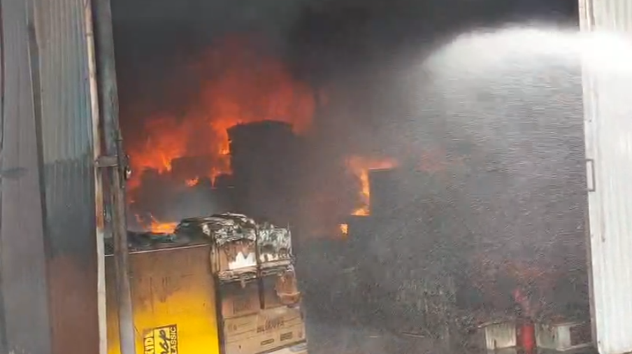 વડોદરાના મધુનગર બ્રિજ નજીક આવેલા બેટરીના ગોડાઉનમાં અચાનક આગ લાગવાની ઘટના સામે આવી છે. આગ લાગતા જ આગના ગોટે ગોટા ઊઠ્યા હતા, જેને કારણે આસપાસના વિસ્તારમાં અફરાતફરી મચી ગઈ હતી. ઘટનાની જાણ થતાં ફાયર બ્રિગેડની બે જેટલી ગાડીઓ તાત્કાલિક ઘટનાસ્થળે પહોંચી હતી અને પાણીનો મારો ચલાવી આગ પર કાબૂ મેળવવાનો પ્રયાસ કર્યો હતો.આગની તીવ્રતા એટલી હતી કે ચારથી પાંચ કિલોમીટર દૂર સુધી ધુમાડાના ગોટા નજરે જોવા મળ્યા હતા. આગ લાગતા આજુબાજુના વિસ્તારના લોકો મોટી સંખ્યામાં ઘટનાસ્થળે એકત્રિત થઈ ગયા હતા. આગના કારણે કોઈ જાનહાનિ થઈ નથી, પરંતુ ગોડાઉનમાં ભારે નુકસાન થવાની આશંકા વ્યક્ત કરવામાં આવી રહી છે.મહત્વનું છે કે આ બેટરીનો ગોડાઉન રહેણાંક વિસ્તારમાં આવેલો હતો. સ્થાનિક રહીશોએ અગાઉ પણ આ બાબતે રજૂઆત કરી હતી કે આવા જોખમી ગોડાઉન રહેણાંક વિસ્તારમાં ન હોવા જોઈએ. આગ લાગતા ડરી ગયેલા સોસાયટીના રહીશો સુરક્ષાના પગલા તરીકે ધાબા પર પહોંચી ગયા હતા.સ્થાનિક રહીશોમાં આ ઘટનાને લઈને ભારે રોષ જોવા મળી રહ્યો છે અને તેઓ દ્વારા તંત્ર પાસે કડક કાર્યવાહી કરવાની માંગ કરવામાં આવી રહી છે.