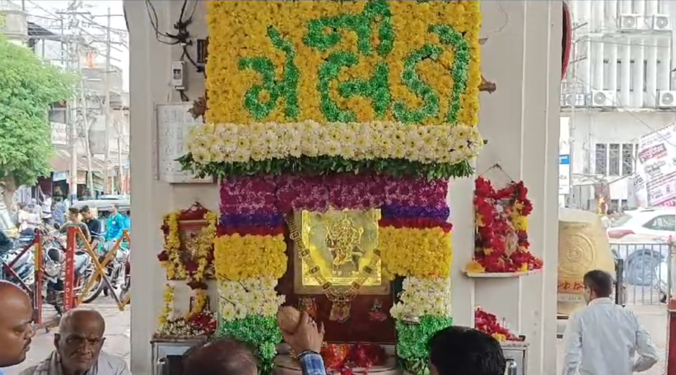 વડોદરા શહેરમાં માંડવી નીચે આવેલ મેલડી માતા ના મંદિરે આજે ગુરૂ પૂર્ણિમા નિમિતે વિશેષ ફૂલોનો શણગાર કરવામાં આવ્યો હતો.