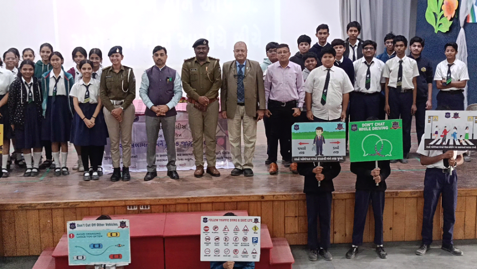 તા 6/1/2025ના રોજ પશ્ચિમ ટ્રાફિક શાખા દ્વારા મે. કમિશ્નર નરસસિમ્હા કોમાર સાહેબ તેમજ જોઈન્ટ કમિશ્નર ડૉ. લીના પાટીલ સાહેબ (ક્રાઇમ /ટ્રાફિક) તથા નાયબ પોલીસ કમિશ્નર શ્રી જ્યોતિ પટેલ સાહેબ (ટ્રાફિક ) તેમજ મદદનીશ પોલીસ કમિશ્નર શ્રી ડી એમ વ્યાસ સાહેબ (ટ્રાફિક પશ્ચિમ) ના ઓના માર્ગદર્શન હેઠળ બરોડા હાઈસ્કૂલ અલકાપુરી ખાતે ટ્રાફિક અવેરનેસ પ્રોગ્રામનું આયોજન કરવામાં આવ્યું હતું જેમાં વિદ્યાર્થીઓ માં અત્યાર થી જ ટ્રાફિક નિયમો પ્રત્યે જાગૃતિ આવે એ હેતુથી હાલની ટ્રાફિક સમસ્યા માંથી કેવી રીતે બહાર નીકળવું તેમજ અકસ્માતો થતા કેવી રીતે અટકાવી શકાય તેમજ વિડીયો ના માધ્યમ થી અકસ્માતો રોકવા શું શું કરવું જોઈએ તેમજ અકસ્માત માં ભોગ બનેલા પરિવાર ની પરિસ્થિતિ કેવી થતી હોય છે તે વિશે માહિતગાર કરવામાં આવ્યા હતા આ ઉપરાંત ટ્રાફિક સમસ્યા નિવારવાં માટેના વિદ્યાર્થીઓ ના વિચારો કેવા છે તે વિશે ચર્ચા કરવામાં આવી હતી આ ઉપરાંત પી આઈ શ્રી પી ડી પરમાર સાહેબ દ્વારા વિદ્યાર્થીઓ ને જરૂરી સૂચનો તેમજ માર્ગદર્શન પૂરું પાડવામાં આવ્યું હતું તેમજ ટ્રાફિક નિયમો અંગે ની પત્રિકા વહેંચી વિદ્યાર્થીઓ ને સંકલ્પ લેવડાવામાં આવ્યા હતા જેમાં આશરે 400 જેટલાં વિદ્યાર્થીઓ હાજર રહ્યા હતા…