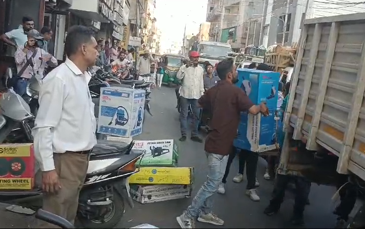 વડોદરા મહાનગરપાલિકાની દબાણ શાખા દ્વારા આજરોજ પોલીસના ઉચ્ચ અધિકારીઓ જેમાં ડીસીપી ઝોન -3 તથા પોલીસ સ્ટાફ સાથે સાથે જ વહિવટી વોર્ડ નં.13 અને 14ના અધિકારીઓ સાથે ટ્રાફિકને નડતરરૂપ શહેરના ચાર દરવાજા વિસ્તારમાં આવેલા લહેરીપુરા ચાર દરવાજા,મંગળબજાર,થી લઇને માંડવી ચાર દરવાજા,,ગેડીગેટ દરવાજા વિસ્તાર તથા હરણખાના રોડ થી દૂધવાળા મહોલ્લા અને ત્યાંથી માડીને લહેરીપુરા વિસ્તારમાં આવેલી ગલીઓમાં નાના મોટા ગેરકાયદેસર દબાણો,દૂકાન બહારના દબાણો લારી ગલ્લા પથારાઓ સહિતના દબાણો મળીને ત્રણ ટ્રકથી વધુનો સામાન જપ્ત કરી કાર્યવાહી હાથ ધરવામાં આવી હતી.આ કાર્યવાહી દરમિયાન નાના મોટા વેપારીઓ તથા પથારાવાળાઓમા ભાગદોડ મચી જવા પામી હતી.સમગ્ર કાર્યવાહી દરમિયાન પોલીસનો ચુસ્ત બંદોબસ્ત ગોઠવવામાં આવ્યો હતો અને ટ્રાફિકને નડતરરૂપ તમામ પ્રકારના દબાણોને સાંજે દૂર કરવાની કામગીરી હાથ ધરવામાં આવી હતી.