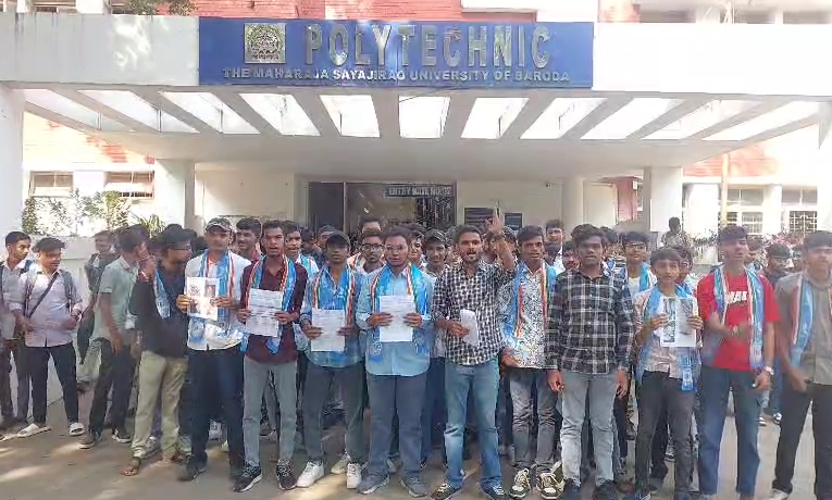 વિશ્વ વિખ્યાત વડોદરાની મહારાજા સયાજીરાવ યુનિવર્સિટીની પોલિટેકનિક કોલેજ ખાતે આજે વિદ્યાર્થી સંગઠન એનએસયુઆઇ દ્વારા વિરોધ પ્રદર્શન કરવામાં આવ્યું હતું.વિદ્યાર્થીઓને કેટલીક પાયાની સુવિધા મળતી નથી. કોમ્પ્યુટર લેબની અછત છે. ફેકલ્ટીમાં ઠેર ઠેર કચરાઓના ઢગ પડ્યા છે. ક્લાસરૂમમાં પણ કચરો પડેલો છે. વિદ્યાર્થીઓ દ્વારા પણ અગાઉ ફોટા પાડીને આ સમગ્ર બાબત અંગે રજૂઆત કરવામાં આવી હતી તેમ છતાં પણ આજ દિન સુધી સમસ્યાનું નિરાકરણ કરવામાં નહીં આવતા આજે વિદ્યાર્થી સંગઠન એનએસયુઆઇના પ્રમુખ અમર વાઘેલા ની આગેવાની હેઠળ વિદ્યાર્થી અગ્રણીઓ દ્વારા ભારે સૂત્રોચાર કરી આવેદનપત્ર પાઠવી રજૂઆત કરવામાં આવી હતી અને જો વહેલી તકે સમસ્યાનું નિરાકરણ કરવામાં નહીં આવે તો ઉગ્ર આંદોલન કરવાની ચીમકી પણ ઉચ્ચારી હતી.
