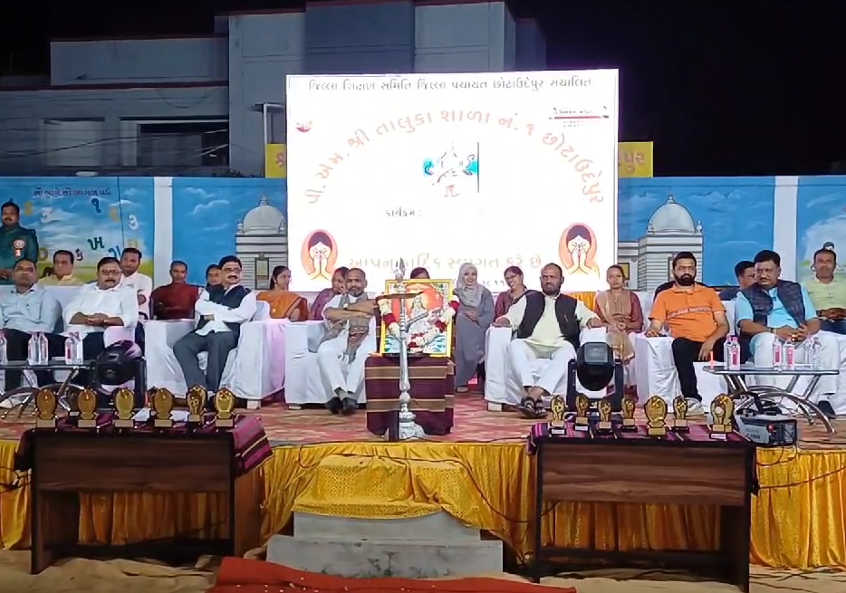 છોટાઉદેપુર જિલ્લા પંચાયત શિક્ષણ સમિતિ સંચાલિત પીએમ શ્રી તાલુકા શાળા નંબર એક છોટાઉદેપુર ખાતે લોકસભા સાંસદ જશુભાઈ રાઠવાના અધ્યક્ષ સ્થાને રંગોત્સવ બાળ કુંજન 3 નિમિત્તે શાળા કક્ષાએ તૃતીય વાર્ષિક ઉત્સવ કાર્યક્રમ યોજાયો હતો. ઉપસ્થિત મહાનુભાવો દ્વારા દીપ પ્રાગટ્ય કરી કાર્યક્રમને ખુલ્લો મુકવામાં આવ્યો હતો. વિવિધ ક્ષેત્રે ઉત્કૃષ્ટ પ્રદર્શન કરી શાળાનું નામ રોશન કરનાર વિદ્યાર્થીઓને મહાનુભાવોના હસ્તે ટ્રોફી તેમજ પ્રમાણપત્ર આપી સન્માનિત કરવામાં આવ્યા હતા. આ પ્રસંગે શાળાના નાના નાના ભૂલકાઓ દ્વારા સુંદર મજાના સાંસ્કૃતિક કાર્યક્રમો રજૂ કરી ઉપસ્થિત સૌને મંત્રમુગ્ધ કરી દીધા હતા. આ પ્રસંગે લોકસભા સાંસદ જશુભાઈ રાઠવા, ધારાસભ્ય રાજેન્દ્રસિંહ રાઠવા, પૂર્વ રેલ રાજ્યમંત્રી નારણભાઈ રાઠવા,એ.પી.એમ.સી.છોટાઉદેપુરના ચેરમેન મુકેશભાઈ પટેલ, જિલ્લા પ્રાથમિક શિક્ષક સંઘના પ્રમુખ માધુભાઈ રાઠવા, પૂર્વ જિલ્લા પ્રાથમિક શિક્ષક સંઘના પ્રમુખ રમણભાઈ રાઠવા,તાલુકા શિક્ષક સંઘના પ્રમુખ જગદીશભાઈ નગરપાલિકાના કોર્પોરેટરો તાલુકા જિલ્લા શિક્ષક સંઘના હોદ્દેદારો વિવિધ શાળાના આચાર્યો પીએમ શ્રી તાલુકા શાળા નંબર 1ના શિક્ષકો એસએમસી સમિતિના સભ્યો શાળાના બાળકો વાલીઓ મોટી સંખ્યામાં ઉપસ્થિત રહ્યા હતા.
