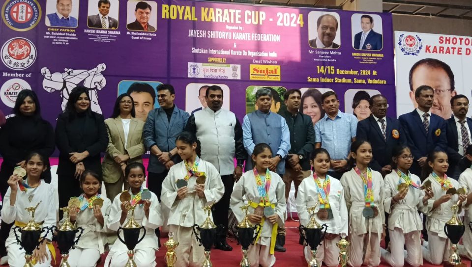 જયેશ શિતોર્યુ કરાટે ફેડરેશન દ્વારા રોયલ કરાટે કપ -2024નુ સમા સ્પોર્ટ્સ કોમ્પલેક્ષ ખાતે આયોજન કરવામાં આવ્યું