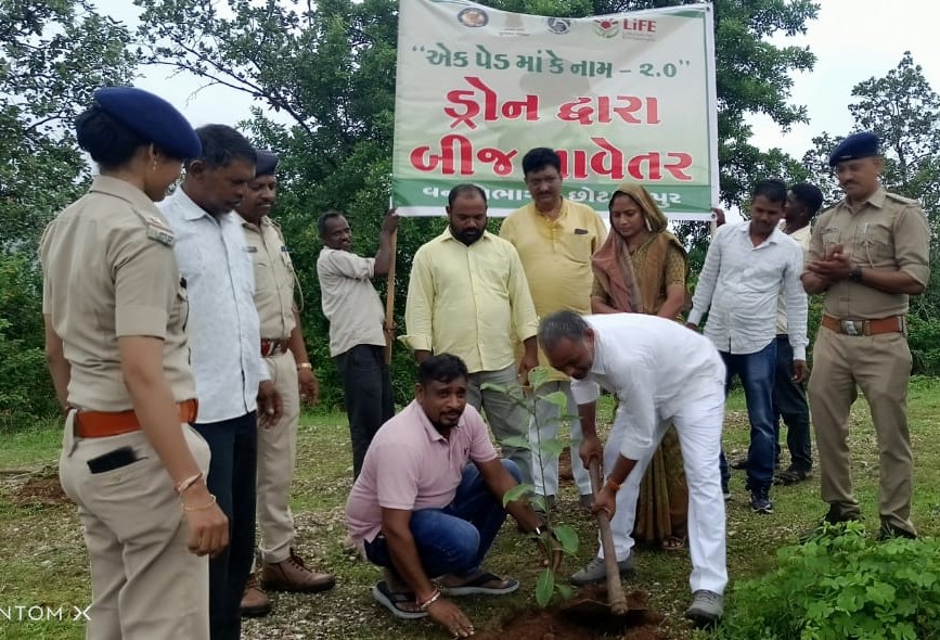 છોટાઉદેપુર વન વિભાગ દ્વારા પીપલેજ ગામે 20 હેકટરમાં આધુનિક ટેકોનોલોજીનો ઉપયોગ કરી ડ્રોન દ્વારા બીજ વાવેતર કરવામાં આવ્યું,જેમાં લોકસભાના સાંસદ અને ધારાસભ્ય ઉપસ્થિત રહ્યા હતા.