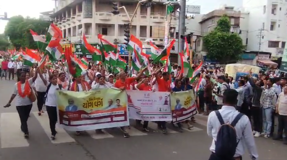 વડોદરામાં રાજ્યના ગૃહમંત્રી હર્ષ સંઘવી ના નેતૃત્વમાં આન બાન શાન સાથે તિરંગા યાત્રા નિકળી હતી. તિરંગા યાત્રા નવલખી ગ્રાઉન્ડથી નિકળીને ગાંધીનગર ગૃહ ખાતે પહોંચી હતી. ગાંધી નગર ગૃહ ખાતેની ગાંધીજીની પ્રતિમાને પુષ્પાંજલી બાદ યાત્રાને પૂર્ણ કરવામાં આવી હતી. વડોદરામાં હજારોની સંખ્યામાં જનમેદનીને જોઇને ગૃમંત્રીએ કહ્યું કે, આખુ શહેર ચારેય દિશામાં તમામે મળીને ભારત માતાની જયનો નારો લગાવ્યો હતો.