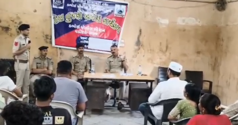 સોનાની લગડી: એક અરજદારની ખોવાયેલી સોનાની લગડી (કિંમત અંદાજે રૂ. 52,000/-) પણ શોધી કાઢીને સન્માનપૂર્વક પરત કરવામાં આવી હતી ત્રણ વાત તમારી, ત્રણ વાત અમારી સંવાદ આ પ્રસંગે માત્ર મુદ્દામાલ પરત જ નહીં, પરંતુ જનતા અને પોલીસ વચ્ચેના સેતુને મજબૂત કરવા માટે “ત્રણ વાત તમારી, ત્રણ વાત અમારી” કાર્યક્રમ પણ યોજાયો હતો. આ અંતર્ગત સ્થાનિક આગેવાનો અને અરજદારોએ પોતાની સમસ્યાઓ રજૂ કરી હતી પોલીસ અધિકારીઓએ કાયદો-વ્યવસ્થા જાળવવામાં નાગરિકોના સહકાર અને સતર્કતા વિશે માર્ગદર્શન આપ્યું હતું મહાનુભાવોની ઉપસ્થિતિઆ કાર્યક્રમમાં ડભોઈ ડિવિઝનના DySP આકાશ પટેલ, ડભોઈ પી.આઈ. (PI) જે. એમ. ચાવડા અને પોલીસ સ્ટાફના અન્ય અધિકારીઓ ઉપસ્થિત રહ્યા હતા. પોતાની મહેનતની કમાણી અને કિંમતી વસ્તુઓ પરત મળતા અરજદારોના ચહેરા પર ખુશી જોવા મળી હતી અને તેઓએ ડભોઈ પોલીસની કામગીરીની પ્રશંસા કરી હતી.ડભોઈ પોલીસની સફળતા: ‘તેરા તુજકો અર્પણ’ કાર્યક્રમ હેઠળ ૧.૫૧ લાખનો મુદ્દામાલ પરત કર્યો.2: ગુમાવેલા મોબાઈલ અને સાયબર ફ્રોડના નાણાં પરત મળતા અરજદારોમાં ખુશીની લહેર.