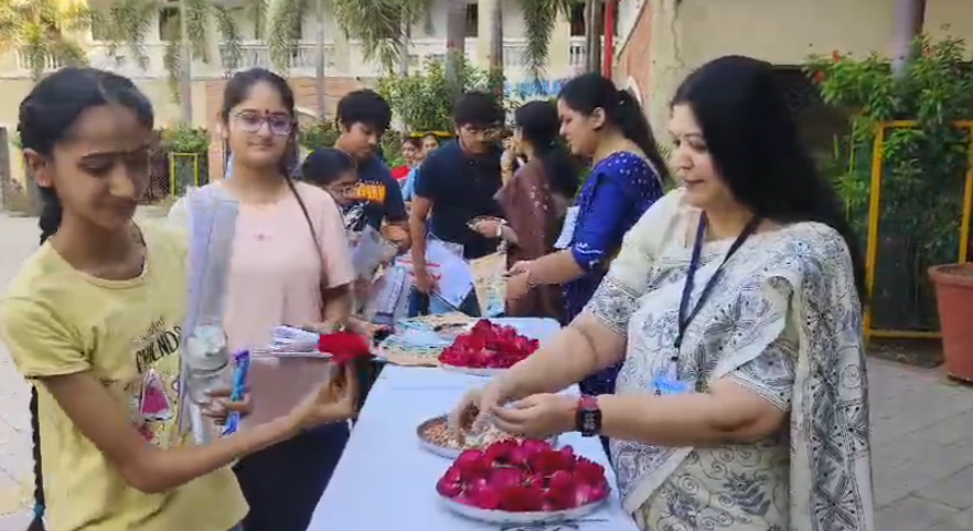 વડોદરા શહેરના માંજલપુર વિસ્તારમાં આવેલી શ્રેયસ વિદ્યાલય ખાતે ધોરણ 10 અને 12ની બોર્ડ પરીક્ષાના પ્રારંભે અનોખો અને ઉત્સાહભર્યો માહોલ જોવા મળ્યો હતો. શાળાના આચાર્ય અને શિક્ષકો દ્વારા વિદ્યાર્થીઓને કુમકુમ તિલક કરી તેમજ ગુલાબનું ફૂલ આપી આત્મવિશ્વાસ સાથે પરીક્ષા આપવા પ્રોત્સાહિત કરવામાં આવ્યા હતા.