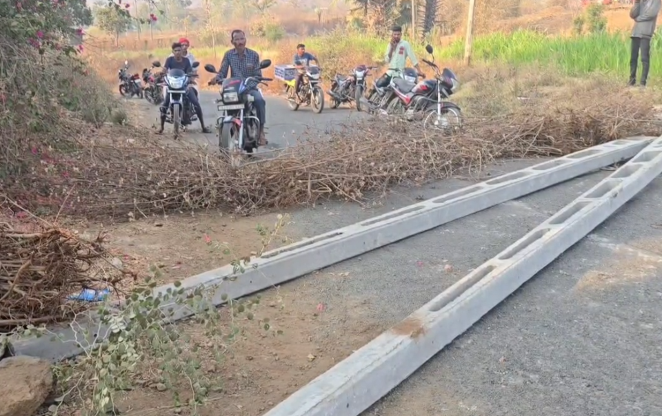 પથ્થરો અને વીજપોલ મૂકીને રસ્તો બંધ કરી દીધો