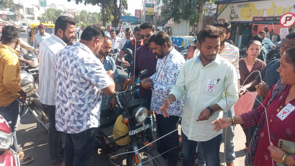 વડોદરા શહેરમાં આગામી ઉતરાયણનું કાઉન્ટડાઉન શરૂ થઈ ગયું છે. લોકો પૂર્વ તૈયારીમાં લાગી ગયા છે, તો બીજી તરફ લોકોની મજા મોતની સજા પણ બની રહી છે. વડોદરા શહેરમાં પતંગની દોરીથી ગળા કપાવાનું સિલસિલો શરૂ થઈ ગયો છે. ખાસ કરીને ચાઈનીઝ દોરીઓ ના કારણે અનેક નિર્દોષ નાગરિકોએ જીવ ગુમાવ્યા છે. ત્યારે આ વખતે પણ આવી પતંગની દોરીઓથી લોકોના જીવ બચાવી શકાય તે હેતુસર વડોદરા શહેર યુથ કોંગ્રેસના કાર્યકારી પ્રમુખ પવન ગુપ્તા દ્વારા સંગમ ચાર રસ્તા ખાતે લોકોના વાહનો પર સેફ્ટી ગાર્ડ લગાવવાના કાર્યક્રમનું આયોજન કરવામાં આવ્યું હતું.જેમાં યુથ કોંગ્રેસના કાર્યકારી પ્રમુખ પવન ગુપ્તા, અને સાધી કાર્યકર મિત્રો દ્વારા માર્ગ પરથી પસાર થઈ રહેલા વાહન ચાલકોની ગાડીઓ પર સેફટી ગાર્ડ લગાવવામાં આવ્યા હતા. જ્યારે આ સમાજ સેવા બદલ વાહન ચાલકોએ યુથ કોંગ્રેસના હોદ્દેદારો અને કાર્યકરોનો આભાર પણ વ્યક્ત કર્યો હતો.