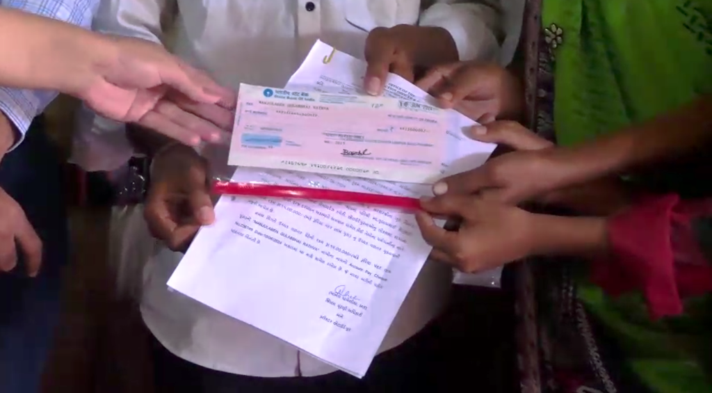 સ્વ.શ્રી ગુલાબભાઈ રાઠવાના પત્નીનેરૂ. ૧૫ લાખનો ચેક અર્પણ કરાયો.