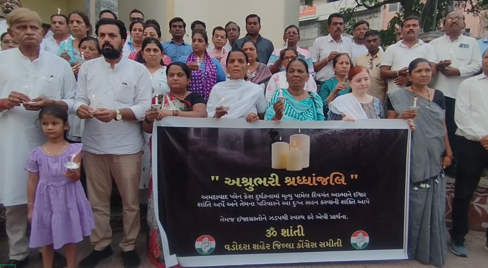 વડોદરા શહેર કોંગ્રેસ સમિતિ દ્વારા પ્લેન ક્રેશ દુર્ઘટનામાં મૃત્યુ પામેલા મૃતકોને શ્રદ્ધાંજલિ