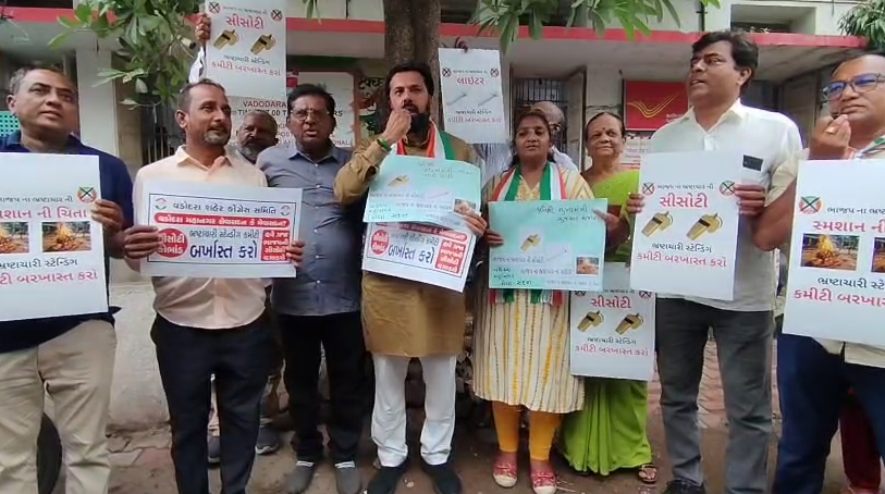વડોદરા શહેર કોંગ્રેસ દ્વારા ફાયરબ્રિગેડ સાધન ખરીદીના ભ્રષ્ટાચાર મામલે અનોખી રીતે વિરોધ કરવામાં આવ્યો