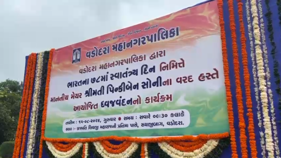 વડોદરા મહાનગરપાલિકા દ્વારા કમાટી બાગ ખાતે છત્રપતિ શિવાજી મહારાજની પ્રતિમા પાસે ભારતના 78 સ્વતંત્રતા નિમિત્તે મેયર પિન્કીબેન સોનીના હસ્તે દવજવંદન કરવામાં આવ્યો જેમાં ડેપ્યુટી મેયર ચિરાગ બારોટ મ્યુનિસિપલ કમિશનર દિલીપ રાણા વડોદરા ભારતીય જનતા પાટી ના પ્રમુખ ડો વિજય શાહ વડોદરા મહાનગર ના તમામ કાઉનસીલરો તથા ફાયર ના અધિકારીઓ તથા સીકયુરીટી તથા બેડ વાંઝા સાથે ભારતના સ્વતંત્રતા ની ઉજવણી કરવામાં આવી