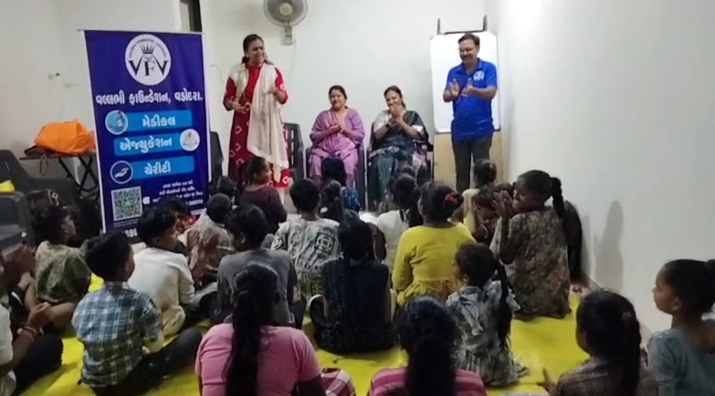 વડોદરા શહેરના વલ્લભી ફાઉન્ડેશન કે જે છેલ્લા આઠ વર્ષથી સ્લમ વિસ્તારના બાળકોને એજ્યુકેશન આપવાનું કામ કરવામાં આવે છે તેમના દ્વારા વિવિધ કાર્યક્રમો પણ બાળકો માટે કરવામાં આવતા હોય છે તેવામાં હાલ ભાઈ બહેન નો પવિત્ર તહેવાર એટલે કે રક્ષાબંધન ને ધ્યાનમાં રાખીને આજરોજ સંસ્થા દ્વારા સંસ્થાના બાળકો માટે રાખડી બનાવવાની કોમ્પિટિશન રાખવામાં આવી હતી જેમાં એક થી છ નંબર માં આવેલા બાળકોને ગિફ્ટ આપીને પોસસાહિત કરવામાં આવ્યા હતા આ કાર્યક્રમ દરમિયાન એપીએસ સ્કૂલના પ્રિન્સિપાલ હેતલબેન તેમજ રેણુકાબેન મહેતા ખાસ ઉપસ્થિત રહી બાળકોનો ઉત્સાહ વધાર્યો હતો