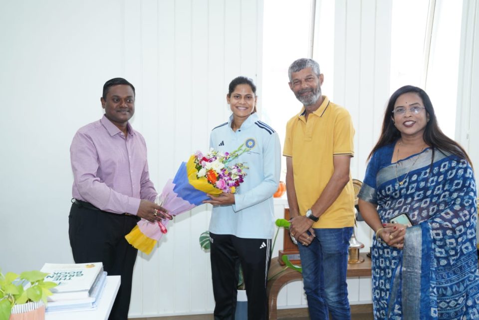 ICC મહિલા ક્રિકેટ વર્લ્ડ કપમાં ચેમ્પિયન બનેલી ભારતીય મહિલા ક્રિકેટ ટીમની ઓલરાઉન્ડર ખેલાડી રાધા યાદવ મ્યુનિસિપલ કમિશનર અરુણ મહેશ બાબુ સાથે શુભેચ્છા મુલાકાત લીધી