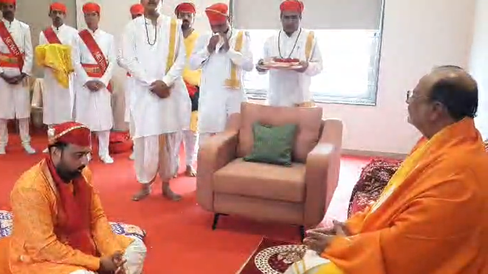 ફૂલોની વર્ષા વરસાવીને ફૂલહાર દ્વારા રંગારંગ ઉષ્માભેર સ્વાગત કરવામાં આવ્યું એટલું જ નહીં યુવરાજ લક્ષરાજસીંગ તૃતીય પીઠાધીશ્વર કાંકરોલી નરેશ વૈષ્ણવોના સરકાર ડોક્ટર વાગીશ કુમારજી મહારાજશ્રી સાનિધ્યમાં રાજભોગમાં પ્રભુશ્રી દ્વારકાધીશ , મૉ યમુના નિકુંજ હવેલીમાં મૉ યમુનાજી